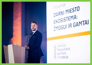 2025-ųjų spalio 28-ąją Aplinkos ministerija organizavo forumą „Darni miesto ekosistema: žmogui ir gamtai“, kuris vyko parodų ir kongresų centre LITEXPO, Vilniuje. Renginio tikslas buvo išgryninti kryptis, leidžiančias kurti miestus, kuriuose žmogaus poreikiai dera su gamtos unikalumu. Renginys subūrė miestų planavimo, aplinkosaugos, viešojo ir nevyriausybinio sektoriaus, verslo bei akademinės bendruomenės profesionalus bendram dialogui apie urbanistikos, biologinės įvairovės, atliekų prevencijos ir klimato kaitos iššūkius.