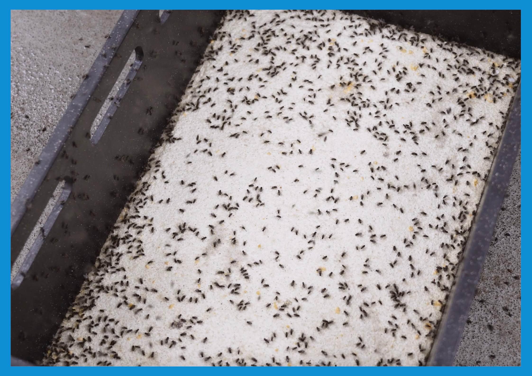 „Konteineryje, kuriame gyvena musės, kas tris – keturias valandas automatiškai išjungiama šviesa, o kiaušinėlių dėjimo įrenginyje – įjungiama. Taip muses priviliojame padėti kiaušinėlius, o vėliau atvirkščiu efektu – grąžiname į gyvenamąjį konteinerį“, – pasakoja Walter‘is Jansen‘as, „Amusca BV“ vadovas ir mokslininkas iš Nyderlandų, sukūręs bei ištobulinęs musių lervų auginimo technologiją.
