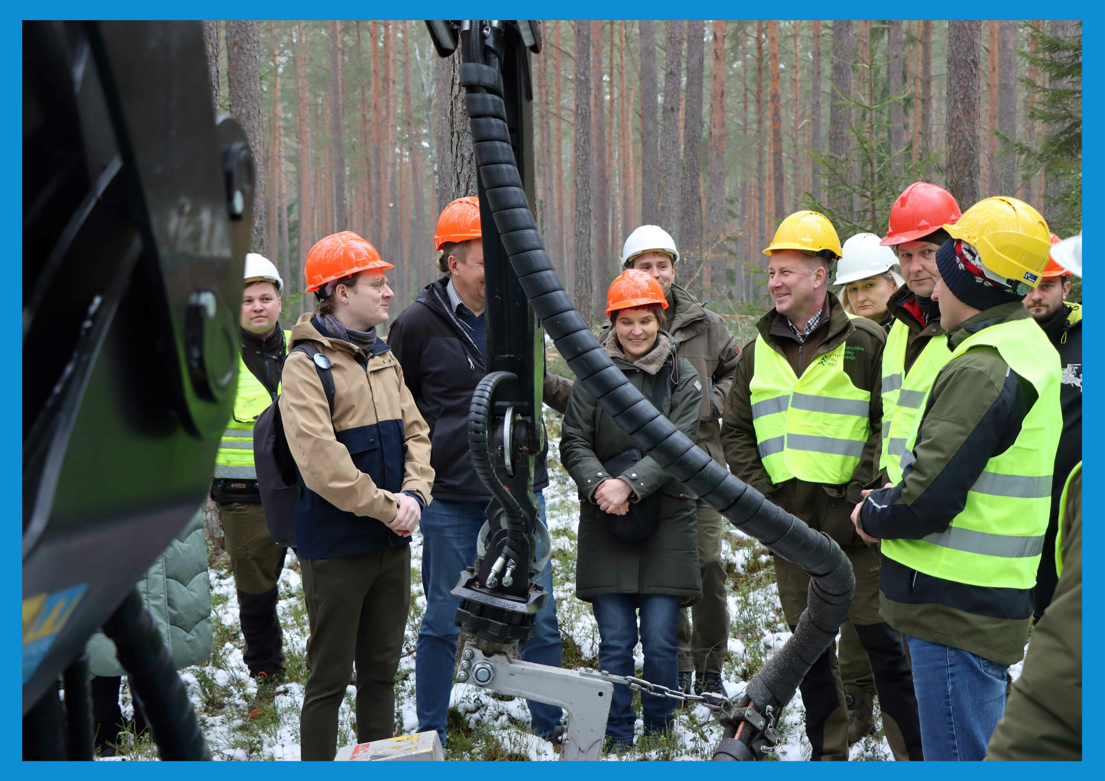 Ketvirtadienio rytą gausus miškininkų, Aplinkos ministerijos, VDU ir LAMMC mokslininkų, nevyriausybinių organizacijų, vietos bendruomenės atstovų būrys patraukė į greta Nemenčinės esančius miškus, kur vyko praktinis pasitarimas, skirtas svarbiems VMU veiklos klausimams aptarti. Susitikimo metu VMU miškininkai pristatė ir gyvai pademonstravo mažosios miško kirtimo technikos panaudojimo galimybes bei rezultatus priemiestiniuose, greta miestų ir miestelių esančiuose miškuose, aptarė šios technikos privalumus bei iššūkius, su kuriais susiduriama. Pirmajame objekte susirinkusieji galėjo matyti, kaip realiai yra atliekamas IIB grupės rekreacinio miško einamasis kirtimas, naudojant mažąją medienos ruošos techniką.